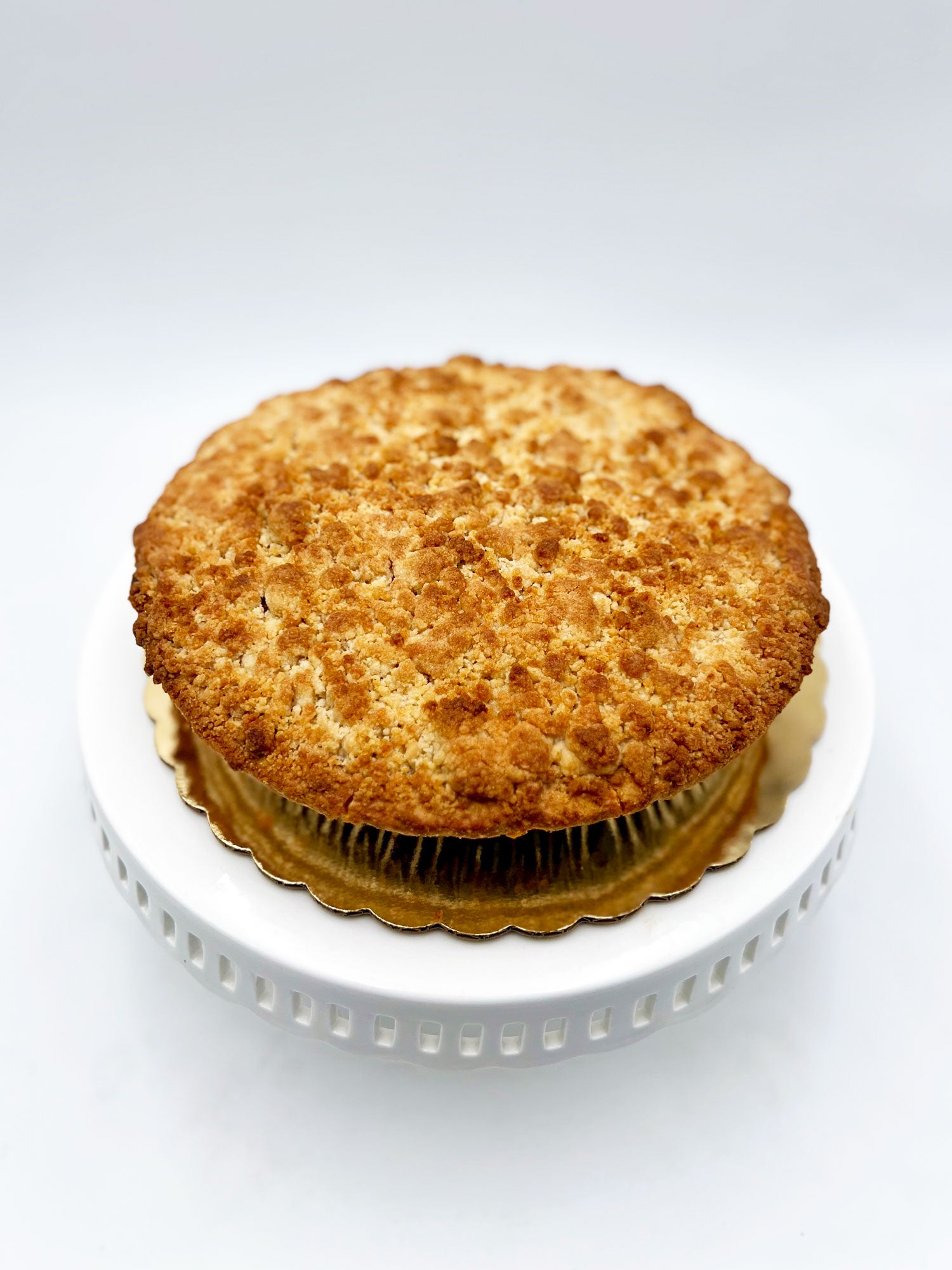 Delight in the flavors of our French apple pie, a refined twist on a classic favorite. Crisp, caramelized apple slices are layered with a hint of cinnamon and brown sugar, nestled in a buttery, flaky crust. Each bite combines the sweetness of tender apples with a touch of warm spices, creating a rustic yet elegant dessert that’s perfect for cozy gatherings or a simple moment of indulgence.