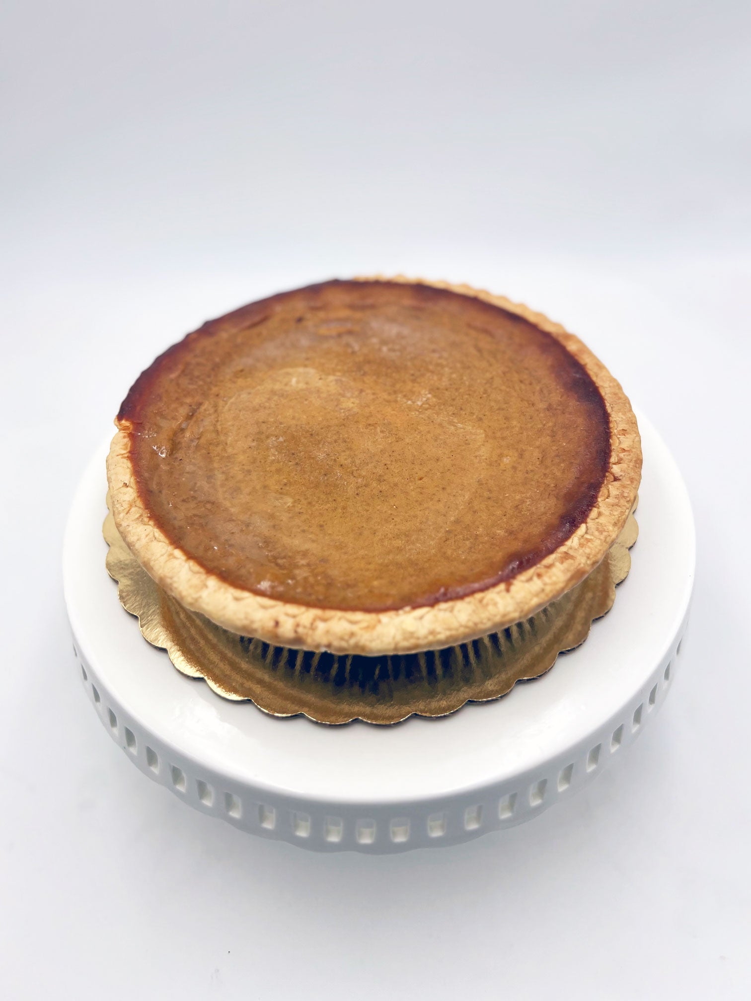 Savor the taste of fall with our creamy pumpkin pie! Silky pumpkin filling, perfectly spiced with cinnamon, nutmeg, and vanilla, rests in a flaky, buttery crust. Each slice offers cozy, comforting flavors, making it the ideal treat for holiday gatherings or seasonal indulgence